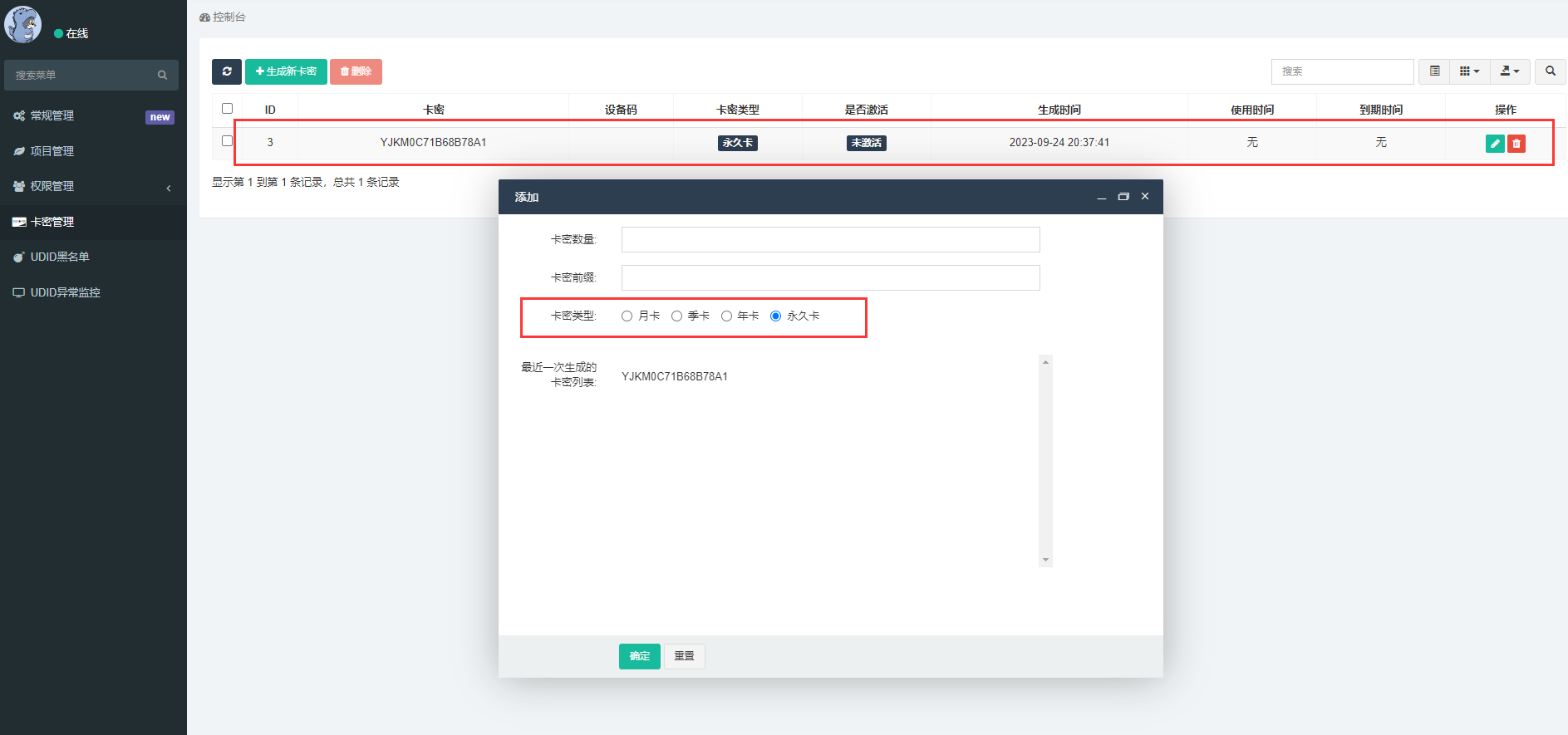 增加卡密类型多个到期时间(天卡、十年、永久等等)