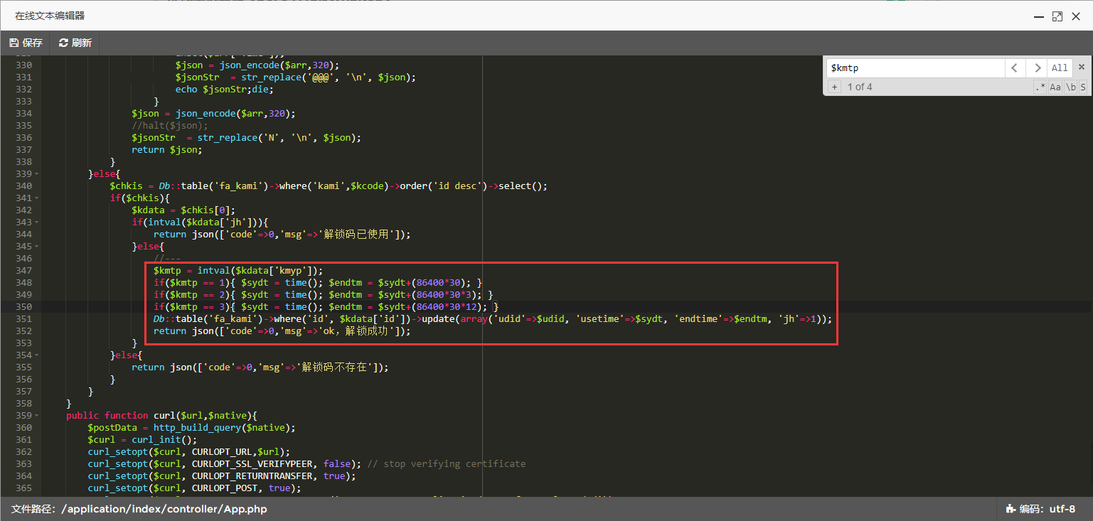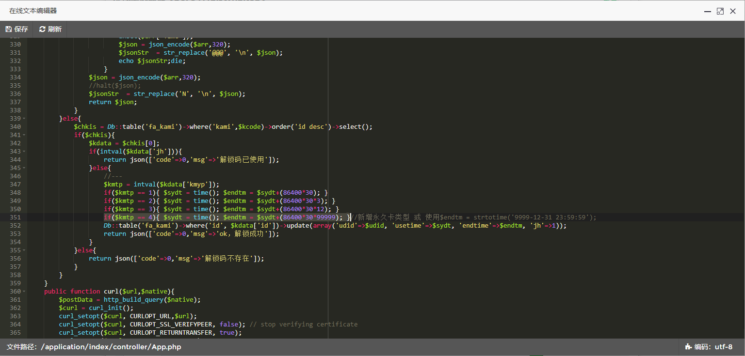 if($kmtp == 4){ $sydt = time(); $endtm = $sydt+(86400*30*99999); }(2)打开源码目录:application/admin/view/kami